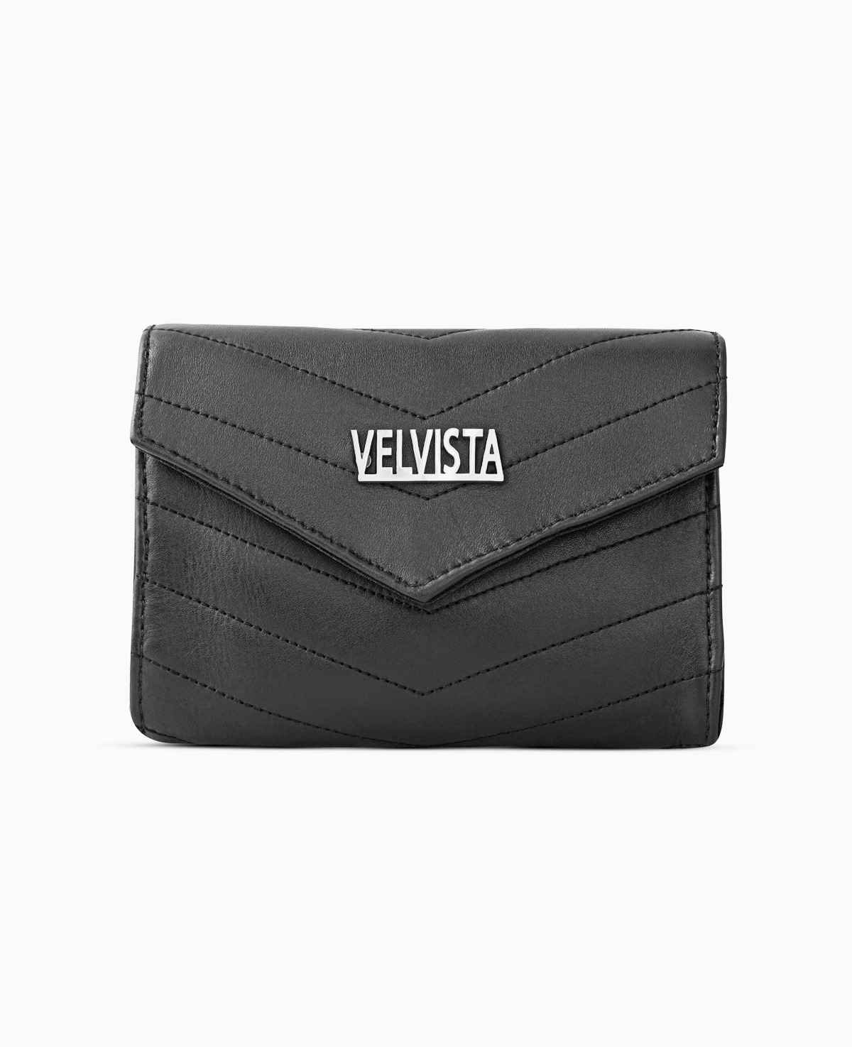 Elevate your style with the Velvista Noir Leather Wallet, a perfect blend of sophistication and functionality. Crafted from premium Cow leather, this wallet features a sleek quilted design with meticulous stitching, adding a touch of elegance to your everyday essentials. The bold Velvista metal logo on the flap enhances its luxury appeal.